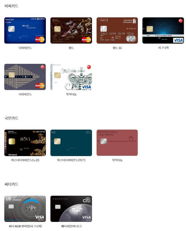 ※ 단, 아래의 제휴 카드 중, 개별적으로 카드사의 재개에 일부 카드는 서비스 이용에 제한이 있을 수 있으니, 서비스 이용이 불가할 경우, 카드사로 문의하시기 바랍니다.